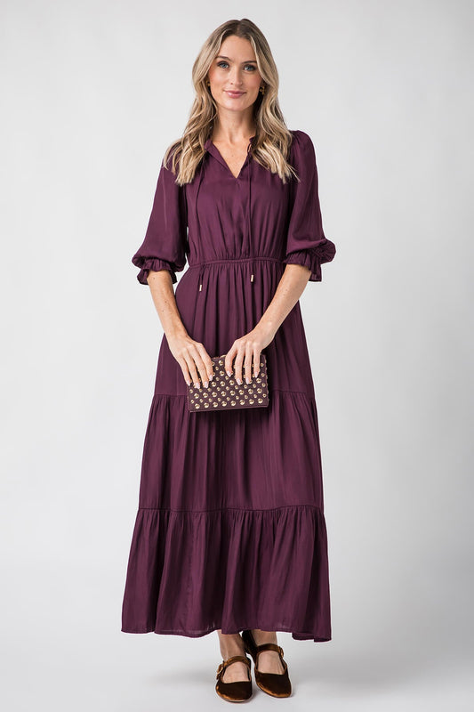 Skies Are Blue Split Neck Ruffle Maxi Dress