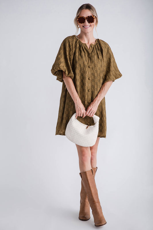 THML Smocked Puff Sleeve Printed Maxi Dress