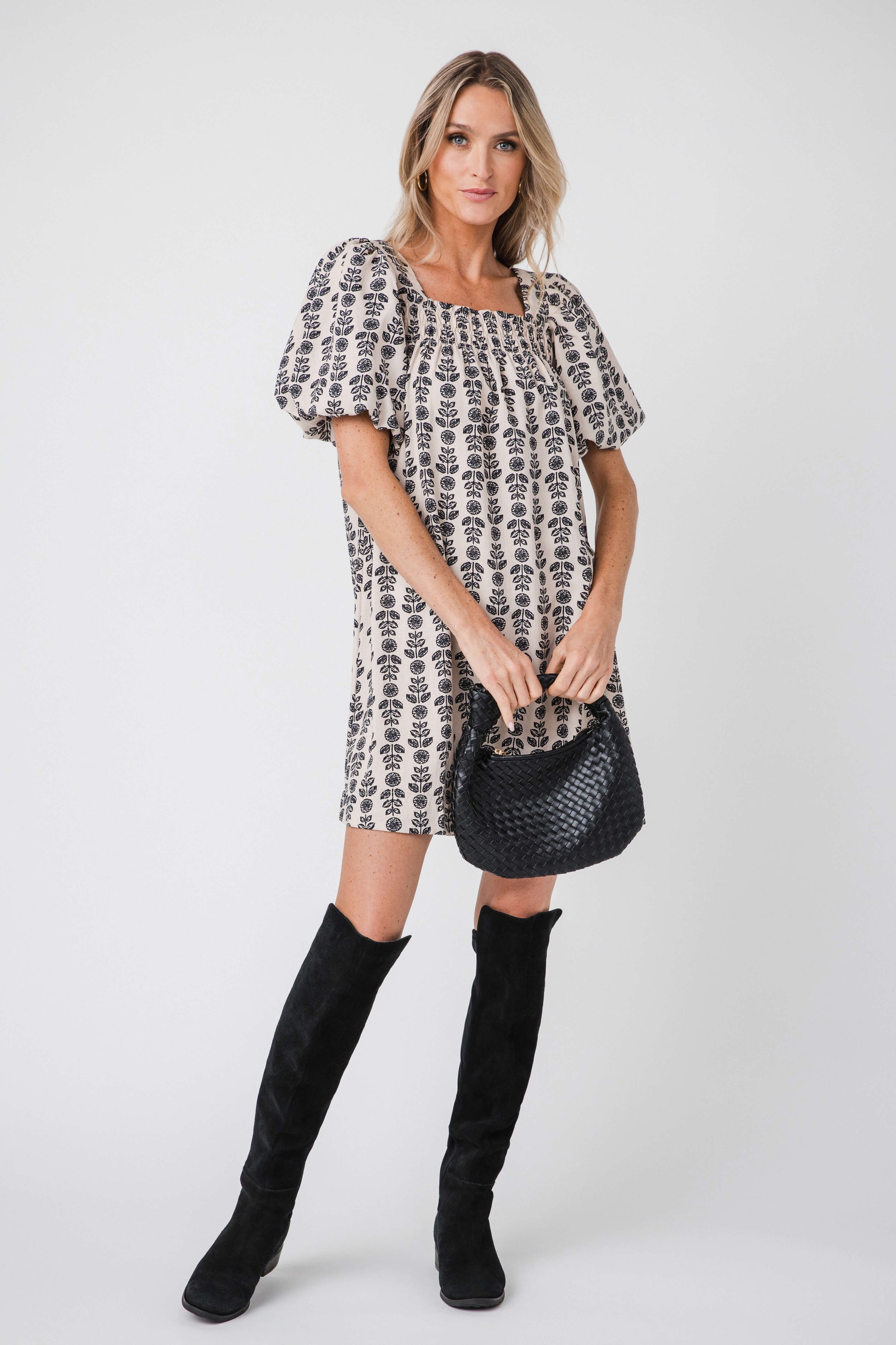 This dress loves any excuse to celebrate. So take our Gigio Printed Socked Square Neck Dress out for a party and throw on some tall boots and a leather bag to complete the full fall look.