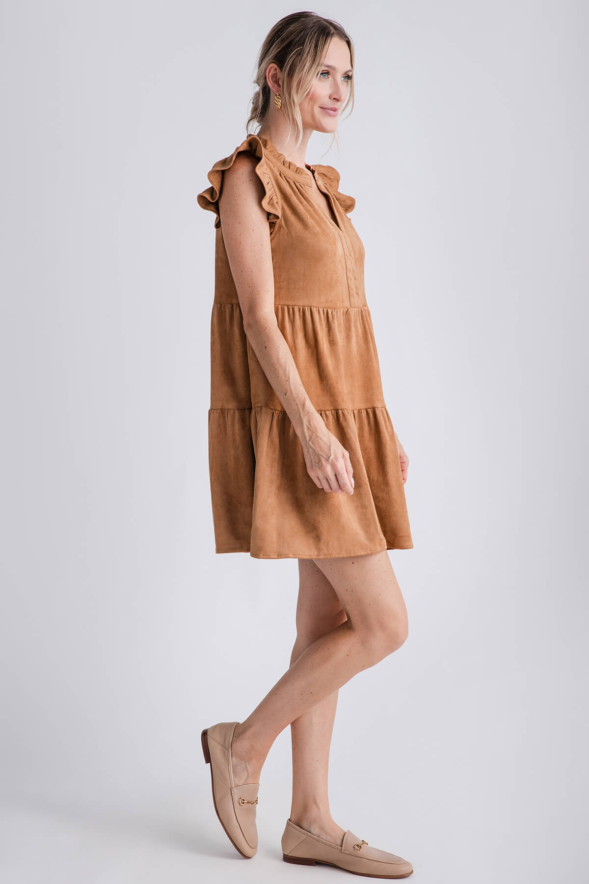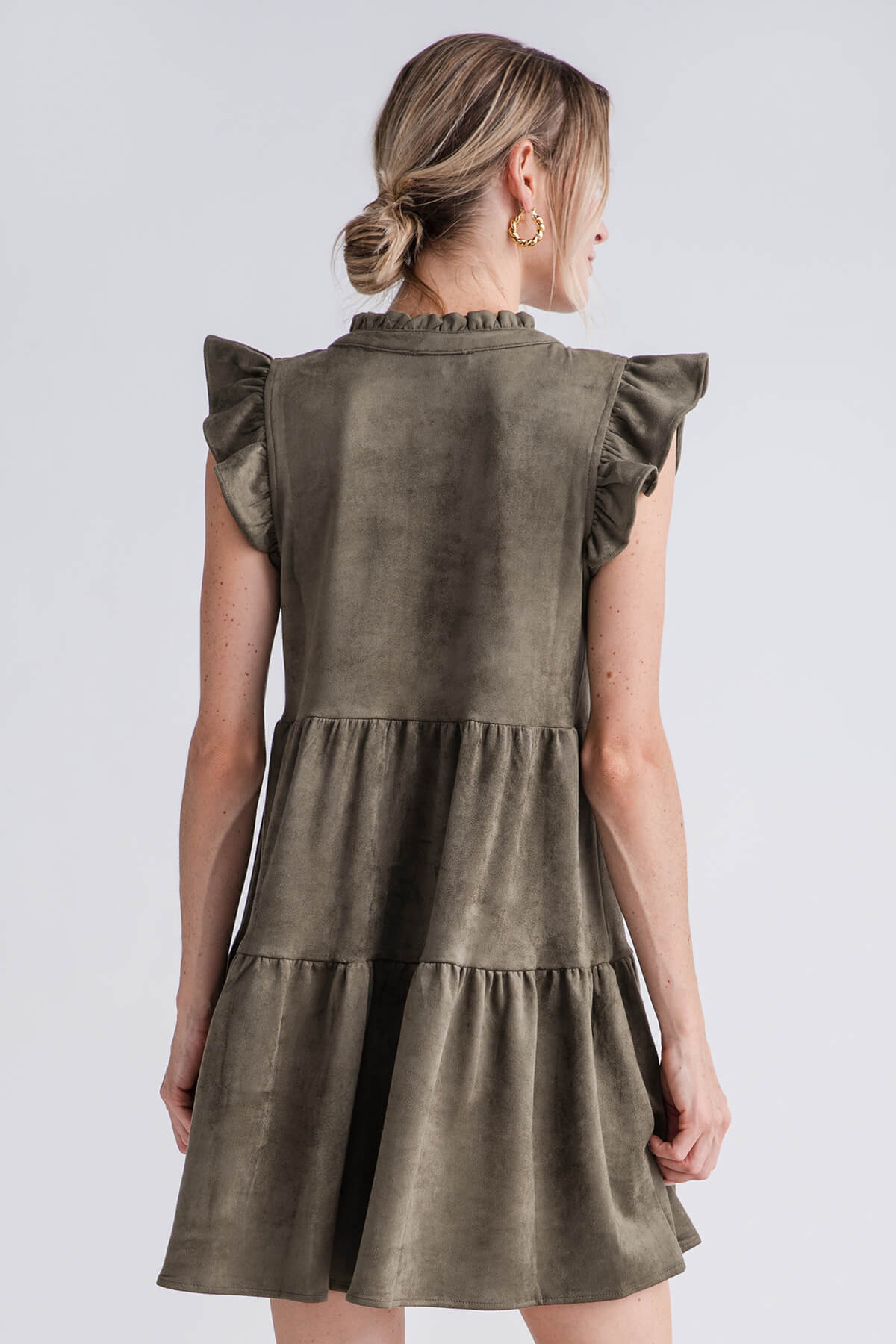 Skies Are Blue Faux Suede Tiered Mini Dress